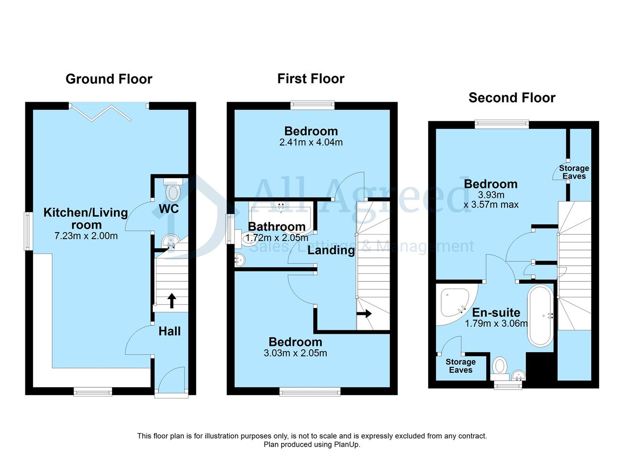 The accommodation is split over three storeys and briefly comprises: Entrance hall, kitchen/living room and WC to the ground floor. Two bedrooms and family bathroom to the first floor. Master bedroom with four piece en-suite to the second floor.