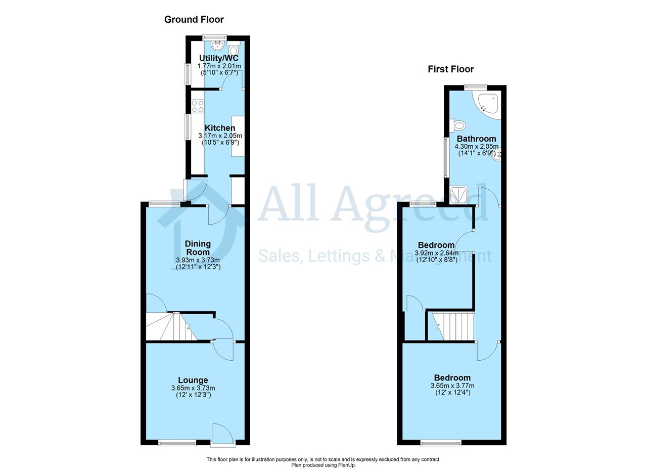 The ground floor offers a lounge, dining room, kitchen and utility/wc. To the first floor there are two double bedrooms and a spacious family bathroom. Gas central heating & UPVC double glazing.