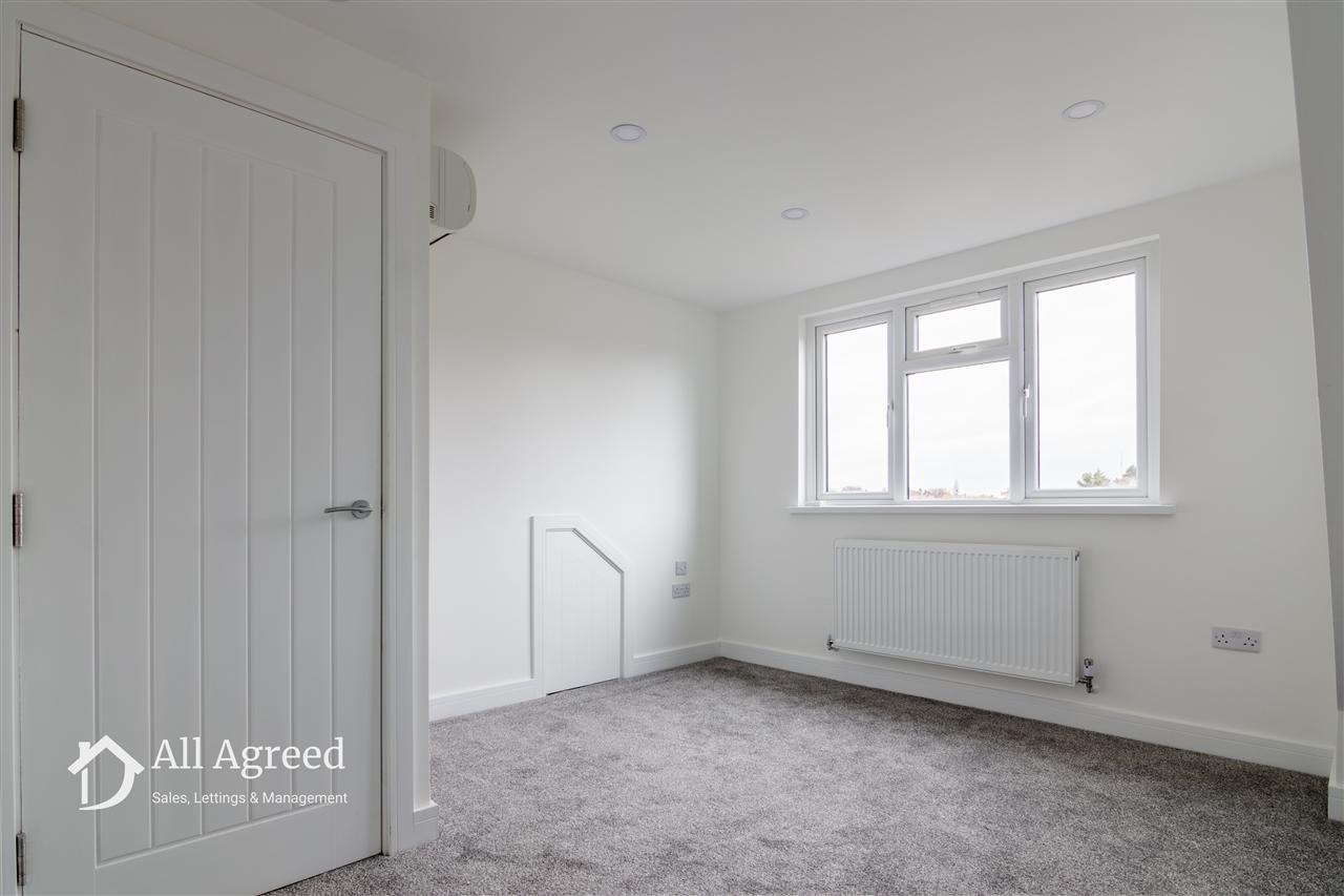 Central heating radiator, TV point, storage eaves and uPVC double glazed window to the rear elevation.