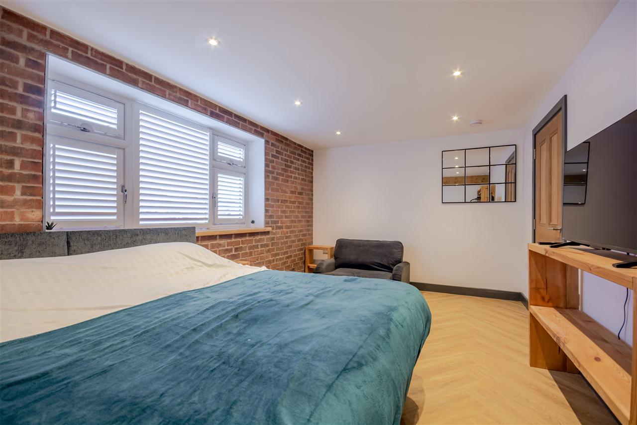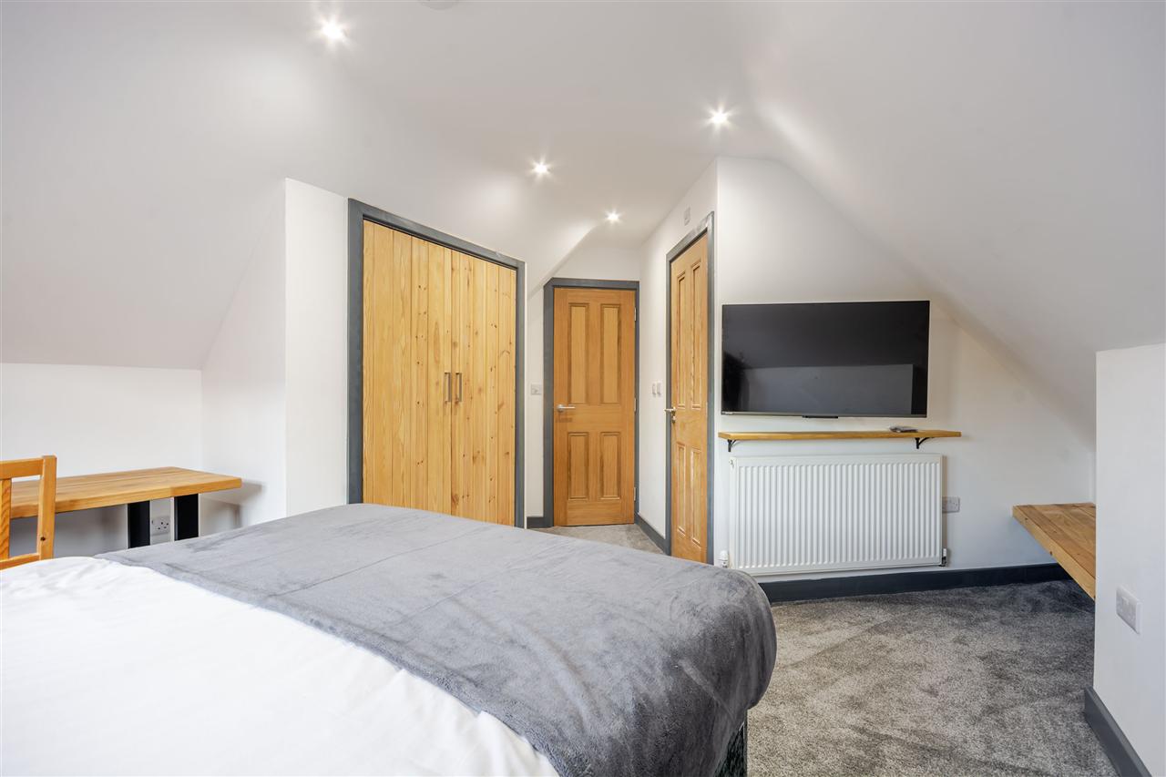 A further double bedroom with UPVC double glazed window, vaulted ceiling, carpeted flooring, ceiling spotlights, radiator and power points. The room benefits from its own en-suite shower room and fitted wardrobes.