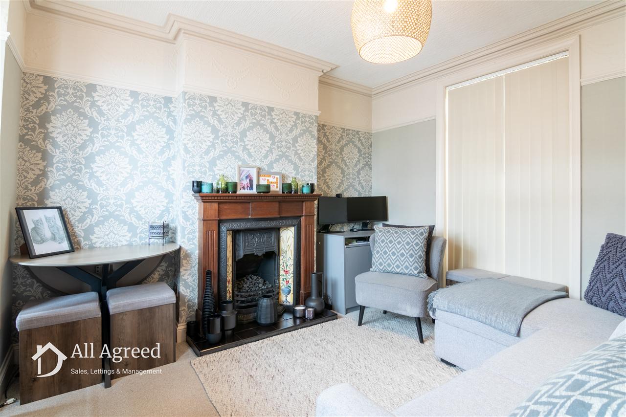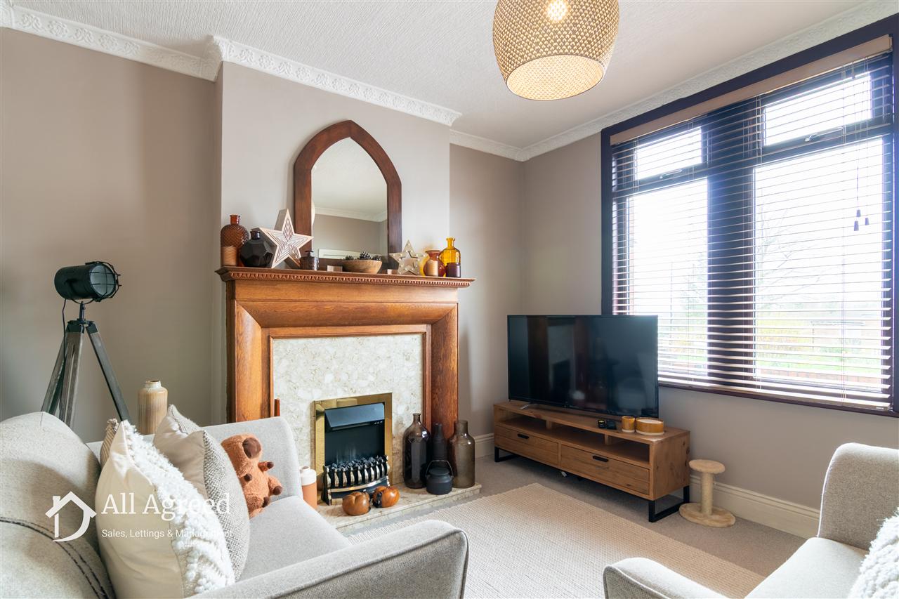 A versatile second reception space with uPVC double glazed window to the front elevation, electric fireplace with wood Adam-style surround, ceiling coving, and central heating radiator. Open through to the kitchen, creating a sociable layout.