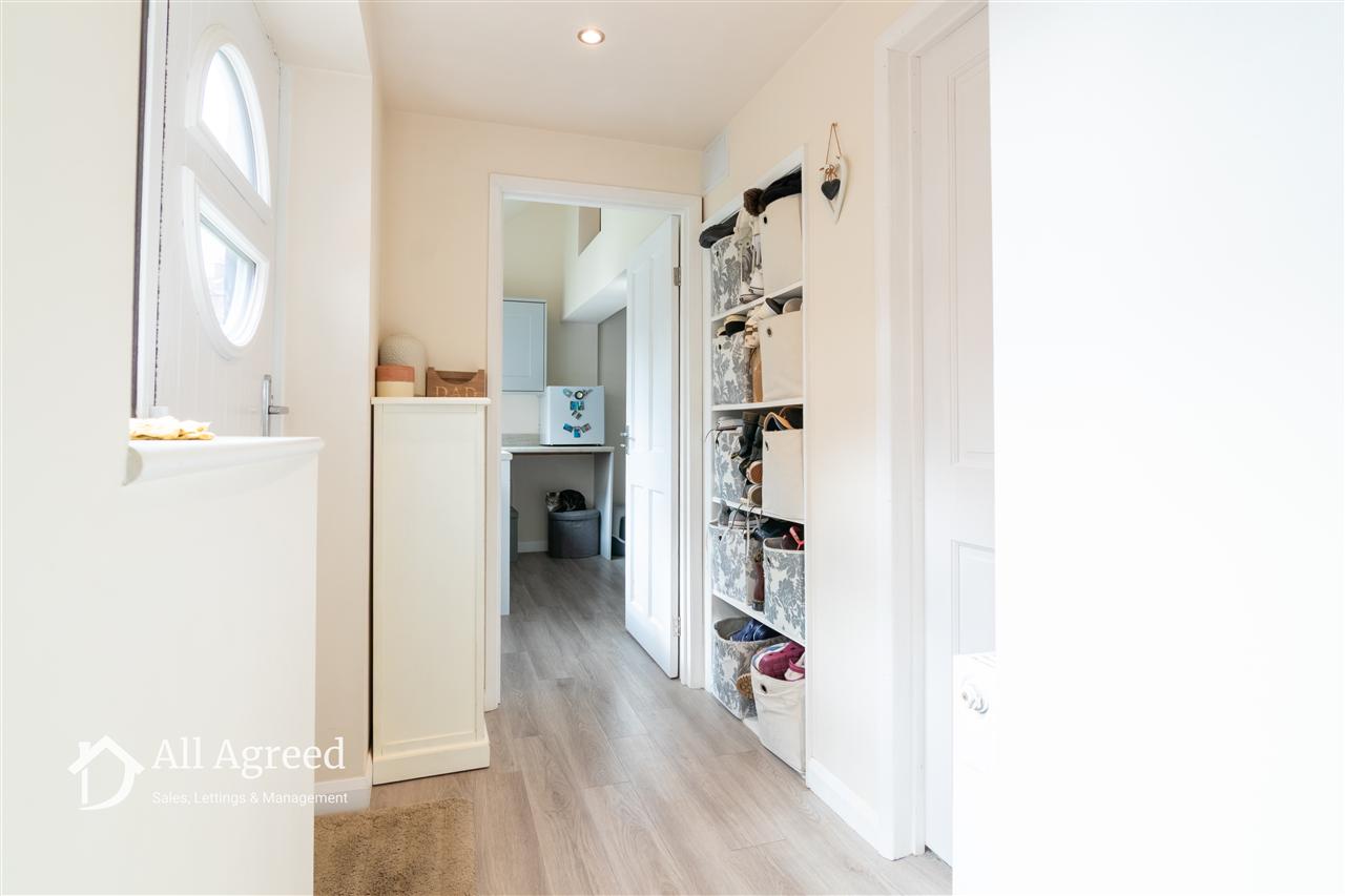 With recessed storage, central heating radiator, uPVC double glazed window, and composite double glazed door providing access to the side elevation.
