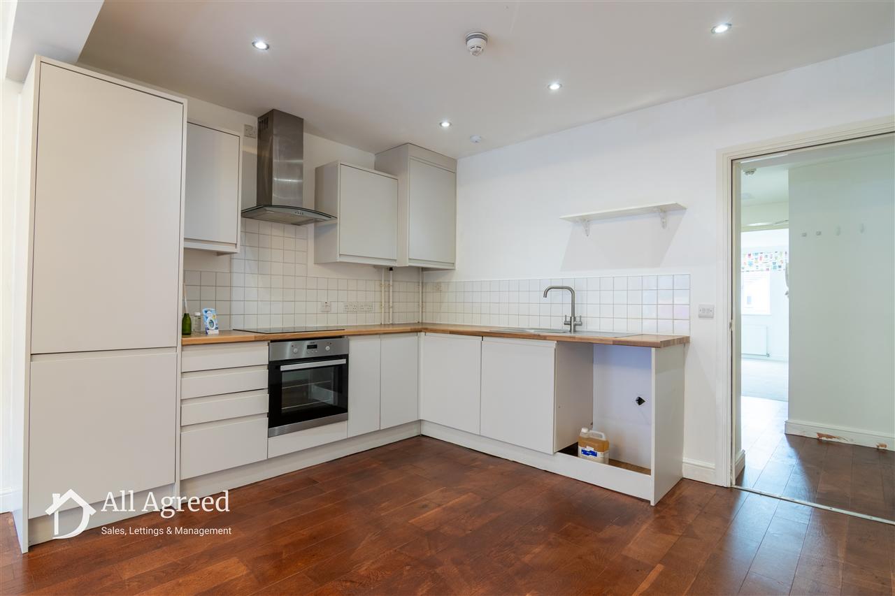 Having a modern fitted kitchen with electric hob, electric oven, extractor hood, integrated fridge freezer, integrated washing machine and appliance space for dishwasher/tumble dryer, wood effect flooring, 2 x central heating radiators, spotlights, TV point and 2 x uPVC double glazed windows to the front elevation.