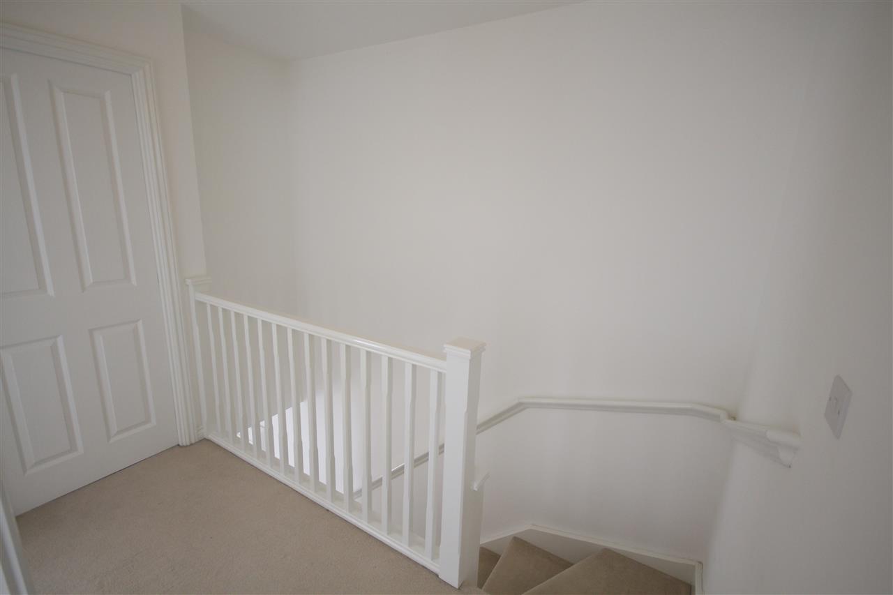 stairs rise from the hallway to the landing area with carpet to floor, handrail, spindle balustrade, central heating radiator, smoke alarm and loft hatch.