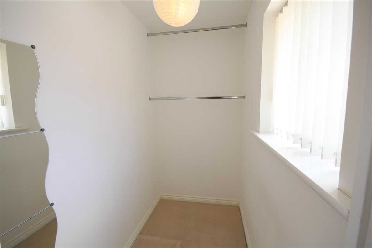 with carpet to floor, central heating radiator, TV point, double glazed window to front elevation and large walk-in wardrobe/dressing area with carpet to floor, skirting boards, lights and double glazed window.